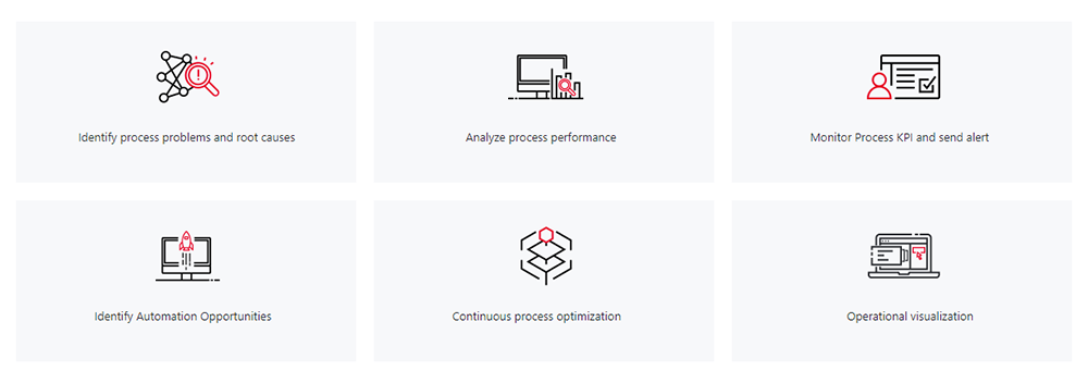 1.Process Discovery: Identify hidden opportunities in business processes and optimize them.